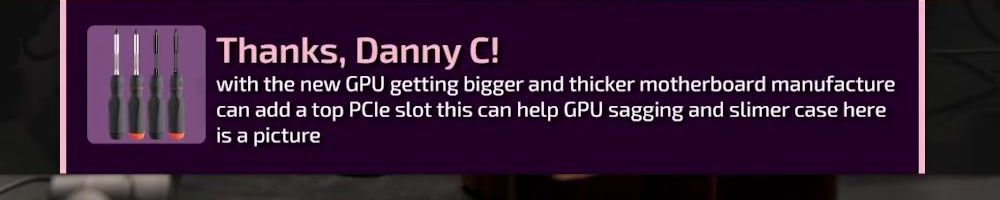 can add a top PCle slot this can help GPU sagging and slimer case here