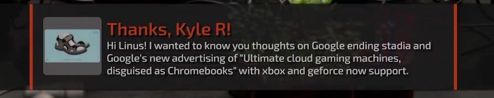Hi Linus! I wanted to know your thoughts on Google ending Stadia and Google's new advertising of "Ultimate cloud gaming machines, disguised as Chromebooks" with Xbox and GeForce Now support.