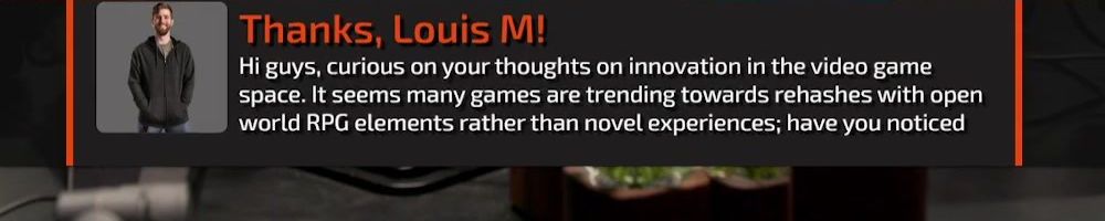 Hi guys, curious on your thoughts on innovation in the video game space. It seems many games are trending towards rehashes with open world RPG elements rather than novel experiences; have you noticed a CTE