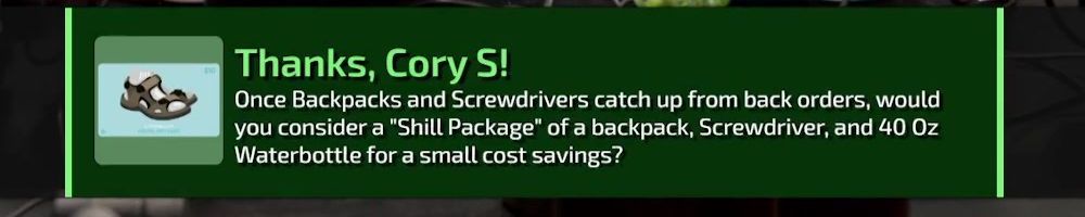 you consider a "Shill Package” of a backpack, Screwdriver, and 40 Oz
