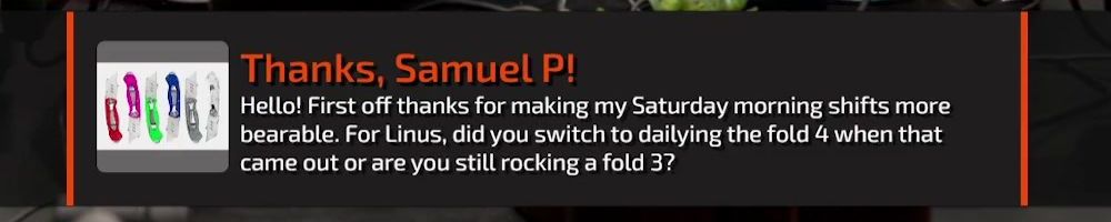 Hello! First off thanks for making my Saturday morning shifts more bearable. For Linus, did you switch to dailying the fold 4 when that came out or are you still rocking a fold 3?
