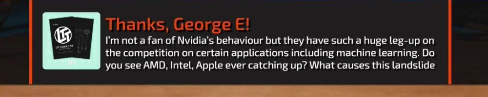 you see AMD, Intel, Apple ever catching up? What causes this landslide