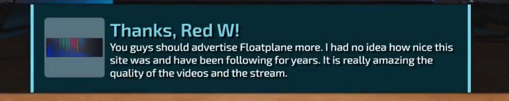 You guys should advertise Floatplane more. I had no idea how nice this site was and have been following for years. It is really amazing the quality of the videos and the stream.
