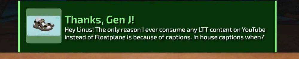 Hey Linus! The only reason I ever consume any LTT content on YouTube instead of Floatplane is because of captions. In house captions when?