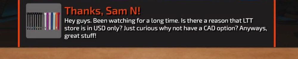 Hey guys. Been watching for a long time. Is there a reason that LTT store is in USD only? Just curious why not have a CAD option? Anyways, great stuff!