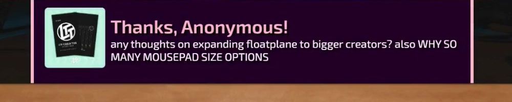 Long time watcher here, got into building PCs because of you guys and recently finished my second build. Treated myself to an LTT desk pad for my new setup and wasn't disappointed, so took the plunge on the