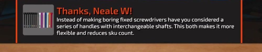 Instead of making boring fixed screwdrivers have you considered a series of handles with interchangeable shafts. This both makes it more flexible and reduces sku count.