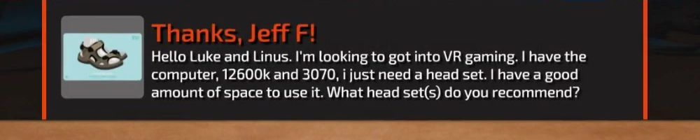 Hello Luke and Linus. I'm looking to got into VR gaming. I have the computer, 12600k and 3070, i just need a head set. I have a good amount of space to use it. What head set(s) do you recommend?