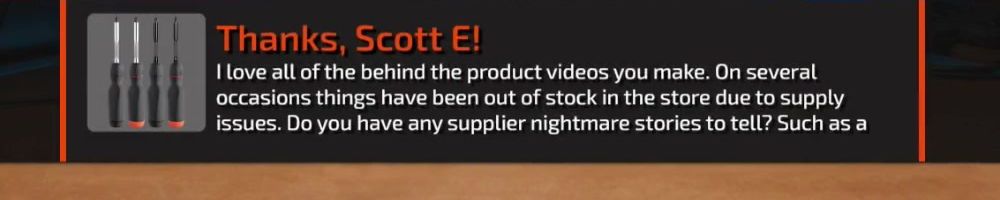 I love all of the behind the product videos you make. On several occasions things have been out of stock in the store due to supply issues. Do you have any supplier nightmare stories to tell? Such as a