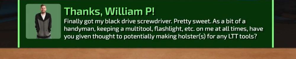 Finally got my black drive screwdriver. Pretty sweet. As a bit of a handyman, keeping a multitool, flashlight, etc. on me at all times, have you given thought to potentially making holster(s) for any LTT tools?