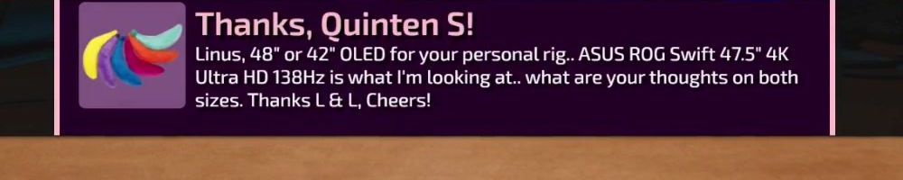 Linus, 48" or 42" OLED for your personal rig.. ASUS ROG Swift 47.5" 4K Ultra HD 138Hz is what I'm looking at.. what are your thoughts on both sizes. Thanks L & L, Cheers!