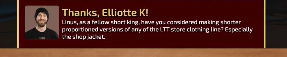 Linus, as a fellow short king, have you considered making shorter proportioned versions of any of the LTT store clothing line? Especially the shop jacket.