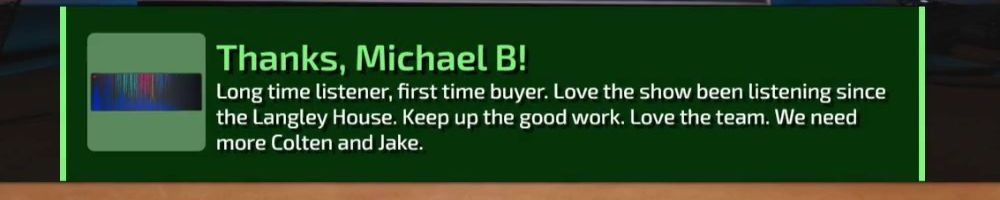 Love the show folks, thanks for getting me through the lockdowns.