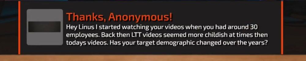 Hey Linus I started watching your videos when you had around 30 employees. Back then LTT videos seemed more childish at times then todays videos. Has your target demographic changed over the years?