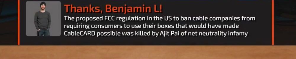 The proposed FCC regulation in the US to ban cable companies from requiring consumers to use their boxes that would have made CableCARD possible was killed by Ajit Pai of net neutrality infamy