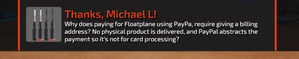 Why does paying for Floatplane using PayPa, require giving a billing address? No physical product is delivered, and PayPal abstracts the payment so it's not for card processing?