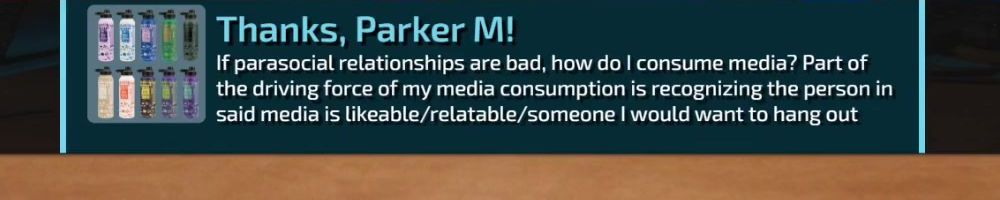 If parasocial relationships are bad, how do I consume media? Part of the driving force of my media consumption is recognizing the person in said media is likeable/relatable/someone I would want to hang out