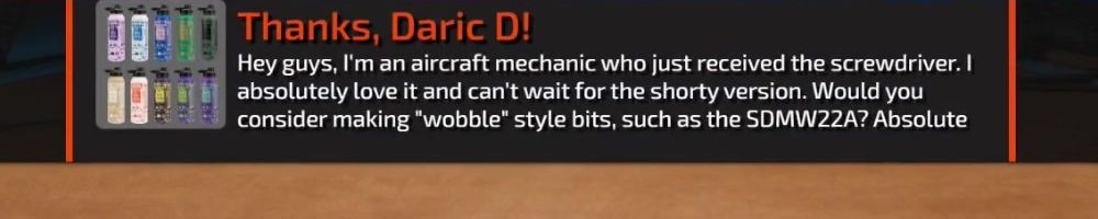 Hey guys, I'm an aircraft mechanic who just received the screwdriver. I absolutely love it and can't wait for the shorty version. Would you consider making "wobble" style bits, such as the SDMW22A? Absolute