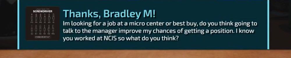 Im looking for a job at a micro center or best buy, do you think going to talk to the manager improve my chances of getting a position. I know you worked at NCIS so what do you think?