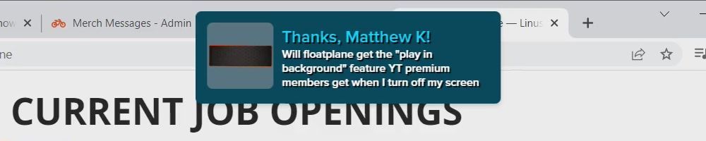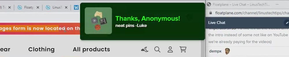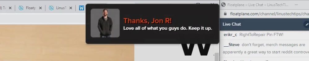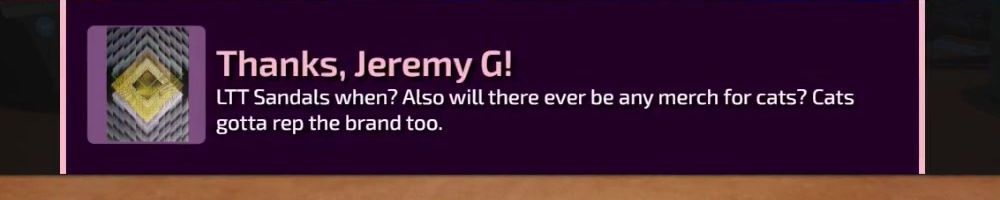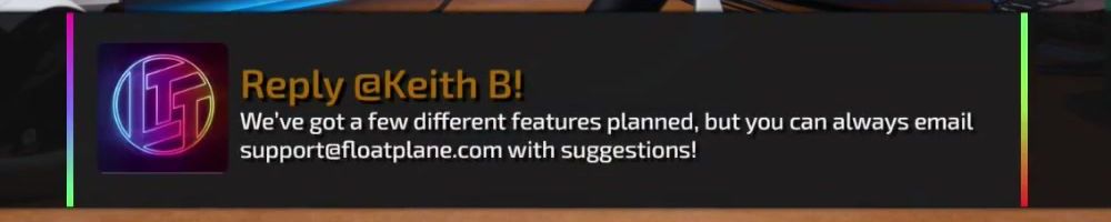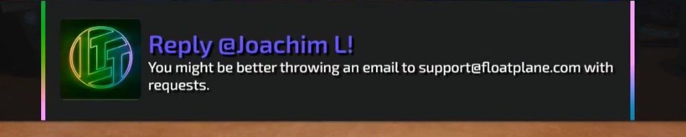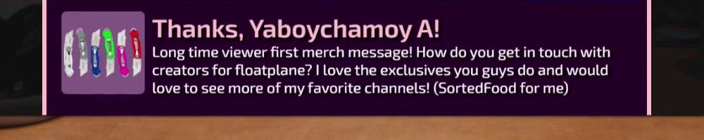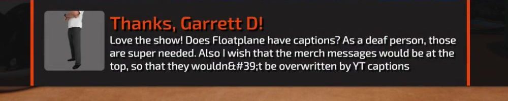 Love the show! Does Floatplane have captions? As a deaf person, those are super needed. Also I wish that the merch messages would be at the top, so that they wouldn't be overwritten by YT captions