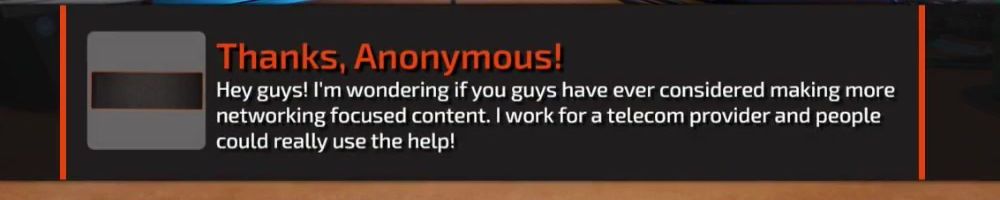 Hey guys! I'm wondering if you guys have ever considered making more networking focused content. I work for a telecom provider and people could really use the help!