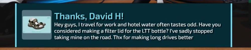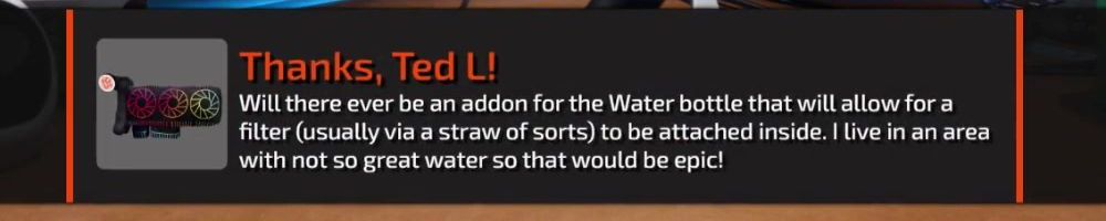 Will there ever be an addon for the Water bottle that will allow for a filter (usually via a straw of sorts) to be attached inside. I live in an area with not so great water so that would be epic!
