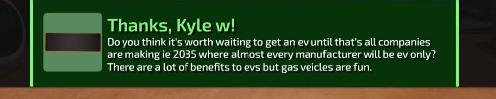 Do you think it's worth waiting to get an ev until that's all companies are making ie 2035 where almost every manufacturer will be ev only? There are a lot of benefits to evs but gas veicles are fun.