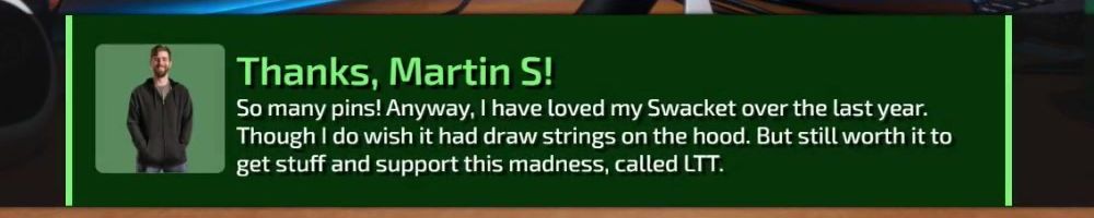 So many pins! Anyway, I have loved my Swacket over the last year. Though I do wish it had draw strings on the hood. But still worth it to get stuff and support this madness, called LTT.