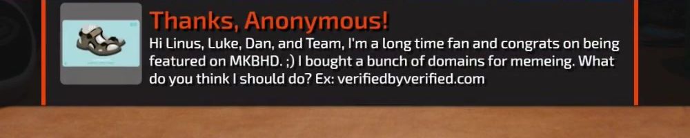 Hi Linus, Luke, Dan, and Team, I'm a long time fan and congrats on being featured on MKBHD. ;) I bought a bunch of domains for memeing. What do you think I should do? Ex: verifiedbyverified.com