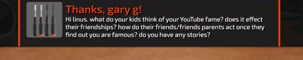 Hi linus. what do your kids think of your YouTube fame? does it effect