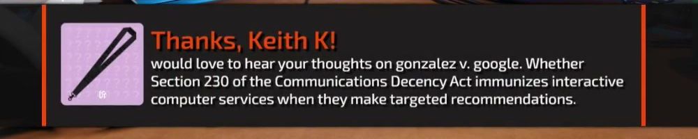 would love to hear your thoughts on gonzalez v. google. Whether Section 230 of the Communications Decency Act immunizes interactive computer services when they make targeted recommendations.