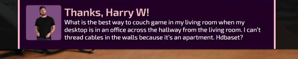 What is the best way to couch game in my living room when my desktop is in an office across the hallway from the living room. I can't thread cables in the walls because it's an apartment. Hdbaset?