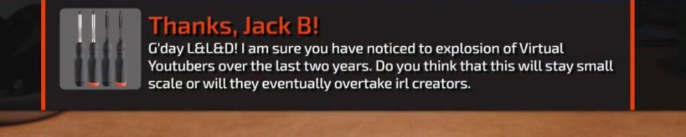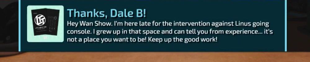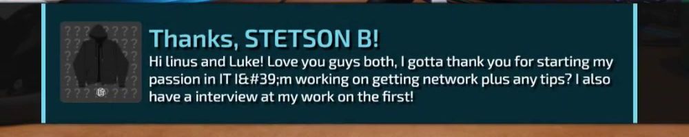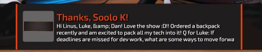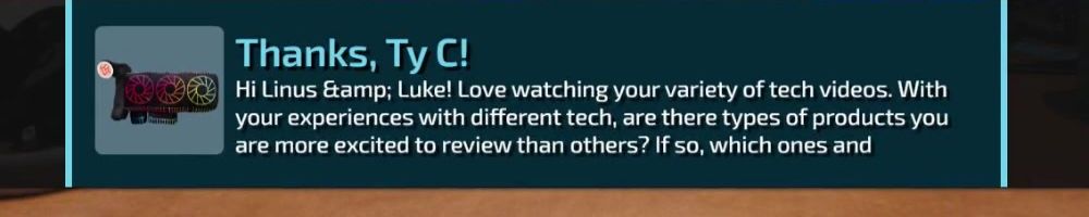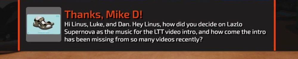 Hi Linus, Luke, and Dan. Hey Linus, how did you decide on Lazlo Supernova as the music for the LTT video intro, and how come the intro has been missing from so many videos recently?