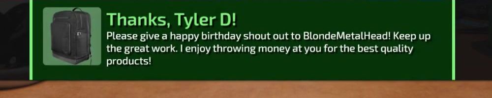 Please give a happy birthday shout out to BlondeMetalHead! Keep up the great work. I enjoy throwing money at you for the best quality products!