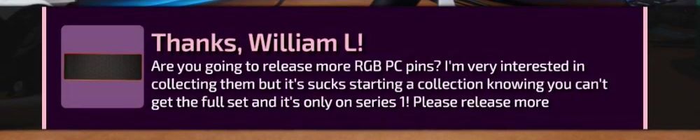 Are you going to release more RGB PC pins? I'm very interested in collecting them but it's sucks starting a collection knowing you can't get the full set and it's only on series 1! Please release more