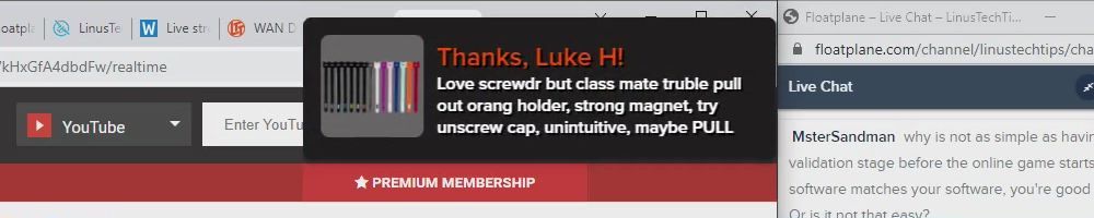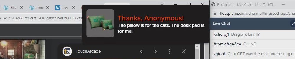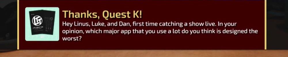 Hint: Use CTRL + F to search messages in this show, or use Whenplane's WAN Show Search tool to search for messages in all shows.