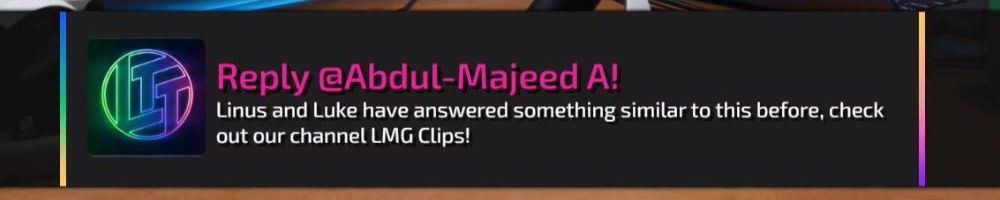 Linus: it's frustrating building something for someone only to then be on the hook for troubleshooting & help Also Linus: hey Luke, I don't know how polls work can you do it? jk<3kidding of course :