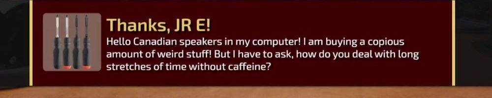 Hello Canadian speakers in my computer! I am buying a copious amount of weird stuff! But I have to ask, how do you deal with long stretches of time without caffeine?