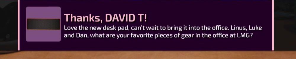 Love the new desk pad, can't wait to bring it into the office. Linus, Luke and Dan, what are your favorite pieces of gear in the office at LMG?