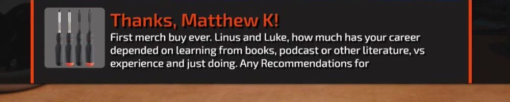 First merch buy ever. Linus and Luke, how much has your career depended on learning from books, podcast or other literature, vs experience and just doing. Any Recommendations for