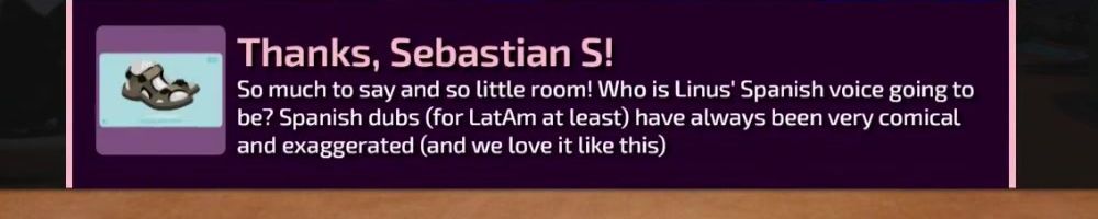 So much to say and so little room! Who is Linus' Spanish voice going to be? Spanish dubs (for LatAm at least) have always been very comical and exaggerated (and we love it like this)