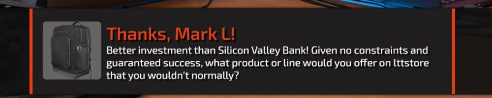 Better investment than Silicon Valley Bank! Given no constraints and guaranteed success, what product or line would you offer on lttstore that you wouldn't normally?