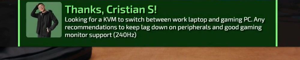 Looking for a KVM to switch between work laptop and gaming PC. Any recommendations to keep lag down on peripherals and good gaming monitor support (240Hz)