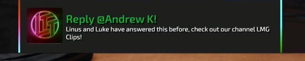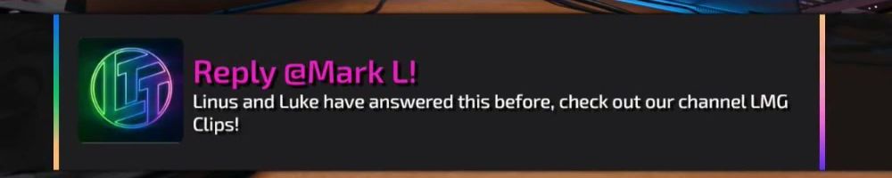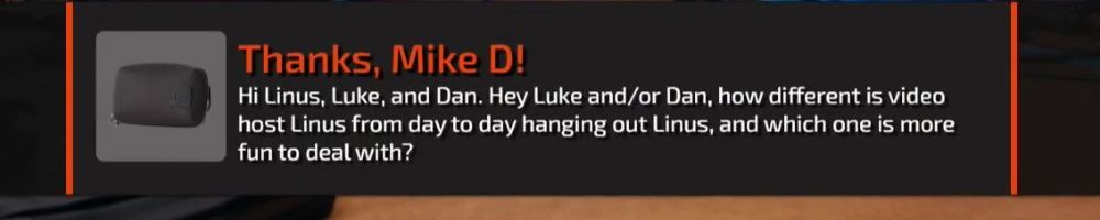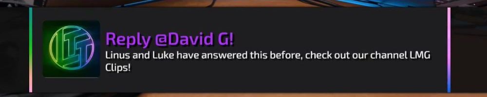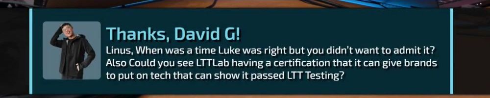 Hey Luke Linus Dan and everyone els at LMG thanks for all that you do!
