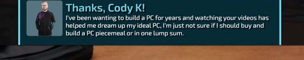 I've been wanting to build a PC for years and watching your videos has helped me dream up my ideal PC, I'm just not sure if I should buy and build a PC piecemeal or in one lump sum.
