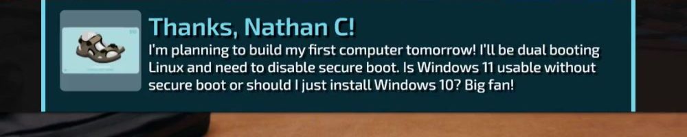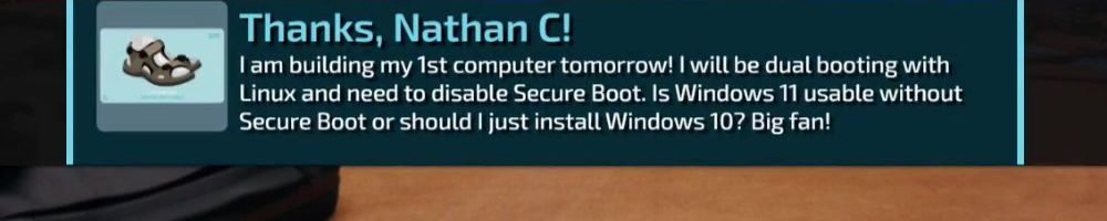I'm planning to build my first computer tomorrow! I'll be dual booting Linux and need to disable secure boot. Is Windows 11 usable without secure boot or should I just install Windows 10? Big fan!