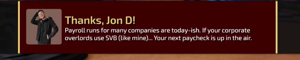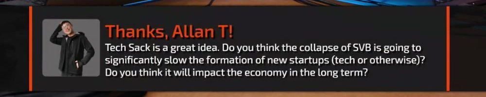 Tech Sack is a great idea. Do you think the collapse of SVB is going to significantly slow the formation of new startups (tech or otherwise)? Do you think it will impact the economy in the long term?