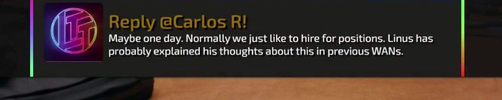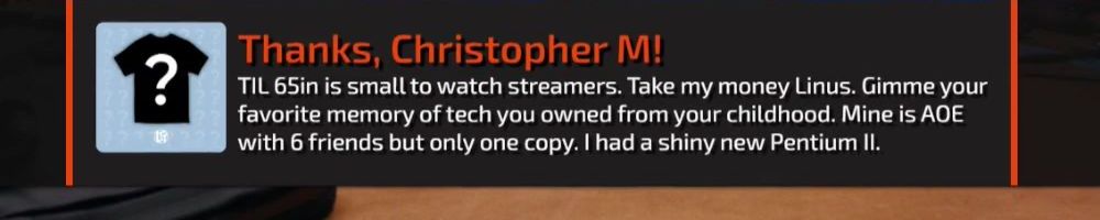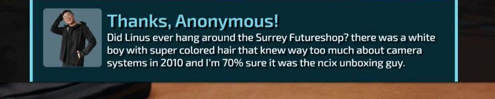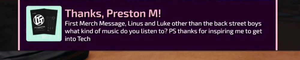 Hey Linus, been following you since your NCIX days. Still loving the show. Cannot wait for future content with the labs. Heres to my first merch purchase and merch message!