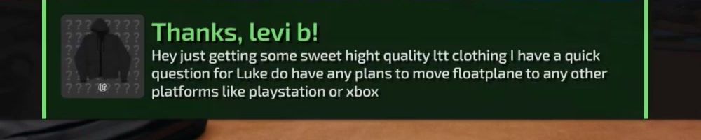 question for Luke do have any plans to move floatplane to any other