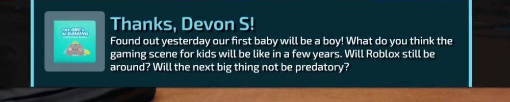 Found out yesterday our first baby will be a boy! What do you think the gaming scene for kids will be like in a few years. Will Roblox still be around? Will the next big thing not be predatory?